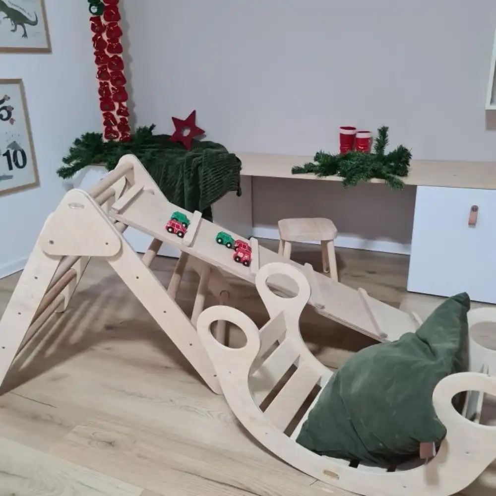 - Piklerov trougao: Stabilna osnova za penjanje koja pomaže u razvoju snage i koordinacije. Dizajniran da bude siguran i izdržljiv, pruža deci savršen izazov za puzanje i uspinjanje.