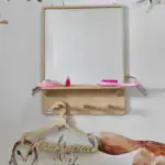 Ovo prelepo ogledalo sa policom dizajnirano je tako da mališanima omogući lako spremanje i samostalan pristup.