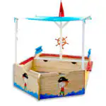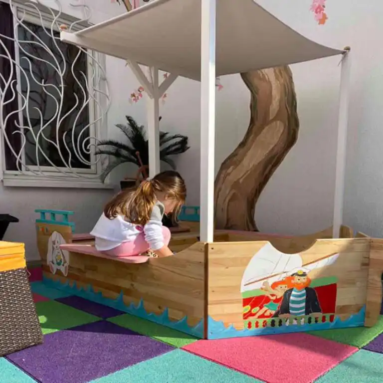 Brodić se radi u dimenzijama 205 x 147 x 153cm, ručno se oslikava se po vašoj želji vodenim bojama i lakovima, poseduje platno za zaštitu od sunca , oslikan jarbol, velike kutije za odlaganje igračaka i obavezno platno za prekrivanje kako bi pesak uvek bio čist.